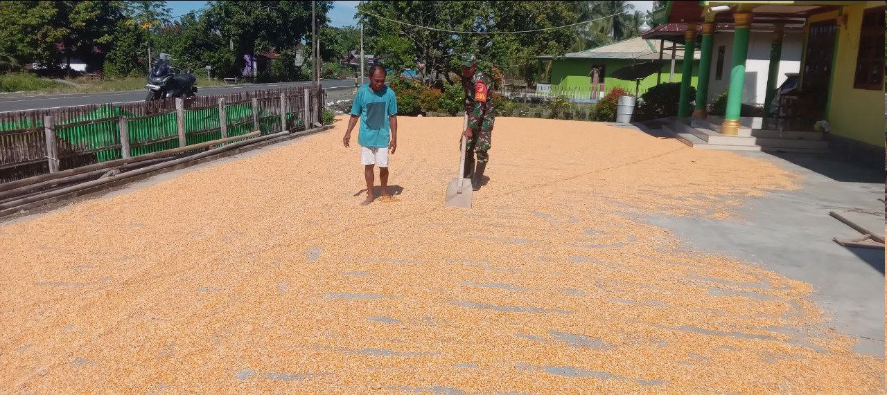 Babinsa Hadir di Tengah Aktivitas Warga, Bantu Petani Jemur Jagung