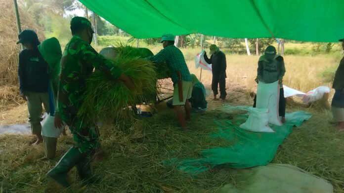 Sejak pukul 09.00 Wita, Serda Sudirman melaksanakan kegiatan Bintahwil dengan membantu merontokkan padi milik salah satu warga binaannya, Nurdin Ginoga, di lahan seluas kurang lebih satu hektare. Kegiatan ini dilakukan sebagai bentuk pendampingan dan dukungan Babinsa terhadap para petani agar hasil panen dapat segera diolah dan dimanfaatkan secara maksimal.