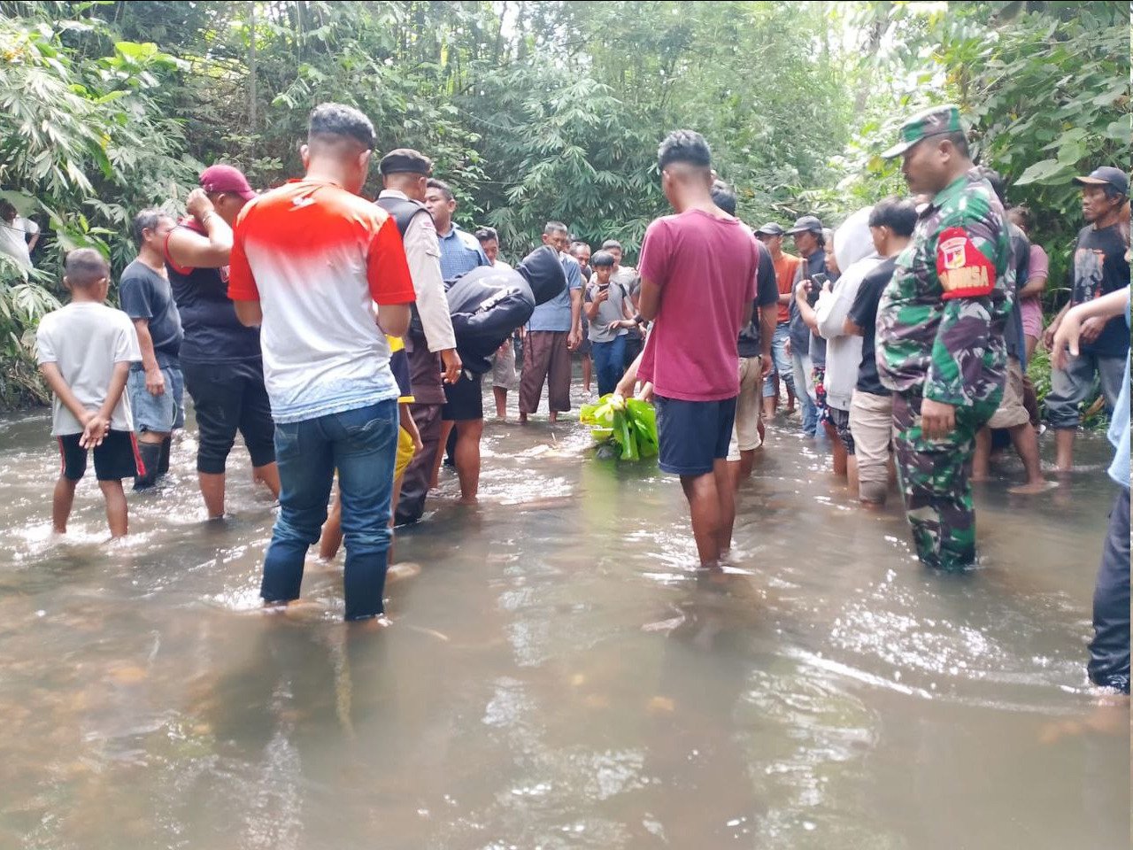 Babinsa Sigap Dampingi Evakuasi Penemuan Warga di Sungai Motoboi