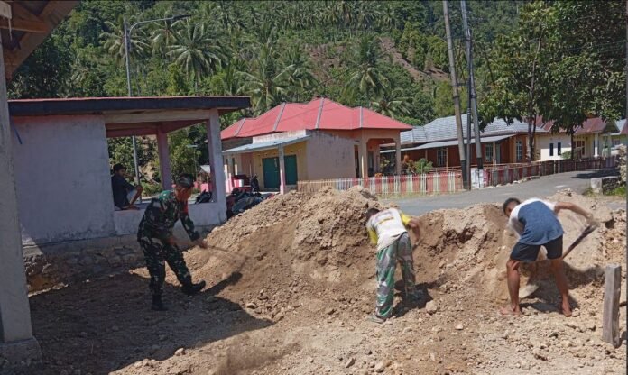B O L S E L – – Wujud nyata kedekatan TNI dengan rakyat kembali ditunjukkan oleh Babinsa Desa Popodu Kecamatan Bolaang Uki Kabupaten Bolaang Mongondow Selatan. Babinsa Koramil 1303-08/Bolaang Uki Kopda Pebrianto Pulumoduyo, turun langsung membantu masyarakat dalam kegiatan Bakti TNI dengan membantu meratakan timbunan tanah untuk pembangunan rumah milik Bapak Abdul Gibo, Kamis (22/01/2026).