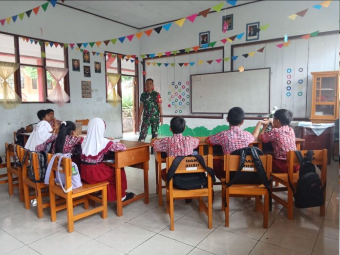 KOTAMOBAGU – – Di tengah semangat pagi yang menyelimuti halaman SD Negeri 3 Kelurahan Kotobangon Kecamatan Kotamobagu Timur tampak wajah-wajah ceria siswa menyambut kehadiran sosok berseragam loreng yang tak asing bagi mereka. Bukan sekadar hadir sebagai aparat kewilayahan, tetapi sebagai sahabat dan pembimbing generasi muda, Babinsa Koramil 1303-01/Kotamobagu Sertu Sudirman, membawa misi mulia yaitu menanamkan rasa cinta Tanah Air sejak dini.
