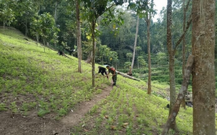 Sementara itu, Bapak Yohan menyampaikan apresiasi atas kepedulian dan perhatian Babinsa yang senantiasa hadir mendampingi masyarakat. Menurutnya, dukungan moril dan tenaga dari Babinsa memberikan semangat tambahan bagi dirinya untuk terus mengelola kebun sebagai sumber penghasilan keluarga.