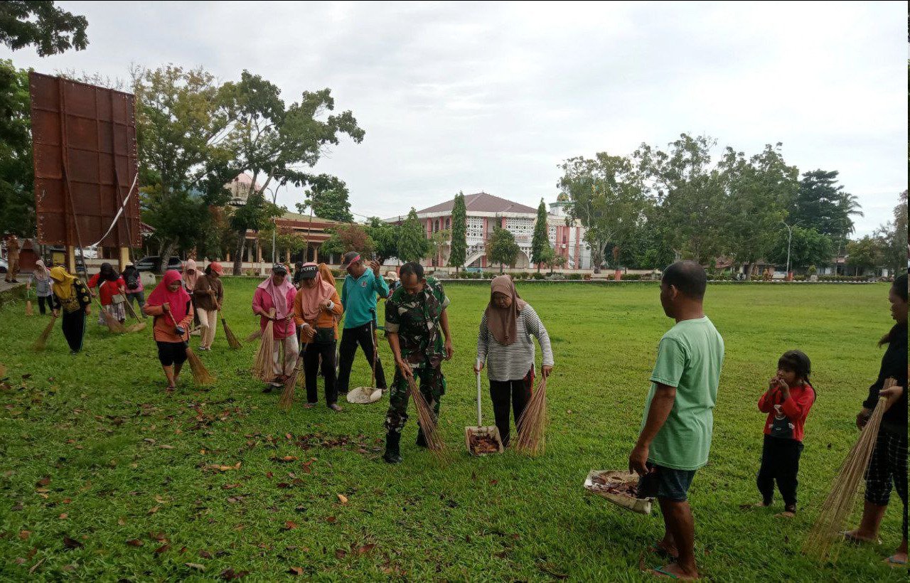 Adalah Babinsa Koramil 1303-13/Kaidipang Sertu Anang Hariadi, yang secara langsung turun ke lapangan, menyatu bersama masyarakat dalam membersihkan area lapangan. Dengan peralatan sederhana dan semangat kebersamaan, kegiatan tersebut melibatkan 25 warga binaan, sebagai wujud nyata kepedulian terhadap lingkungan sekaligus penguatan nilai kebersamaan di tengah masyarakat.