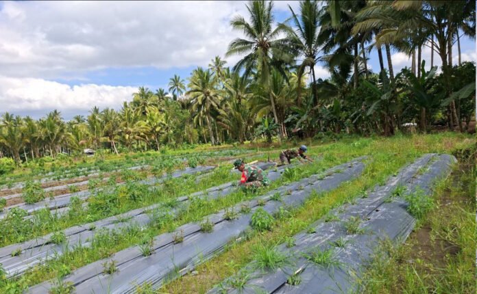 Melalui kegiatan Pembinaan Ketahanan Wilayah (Bintahwil), Kopda Mansur membantu perawatan tanaman cabai milik Bapak Sofyan Mamonto (46), seorang petani di Desa Bongkudai, Kecamatan Modayag Barat, Kabupaten Bolaang Mongondow Timur. Lahan cabai seluas kurang lebih 0,5 hektare tersebut menjadi salah satu sumber penghidupan utama keluarga Bapak Sofyan.