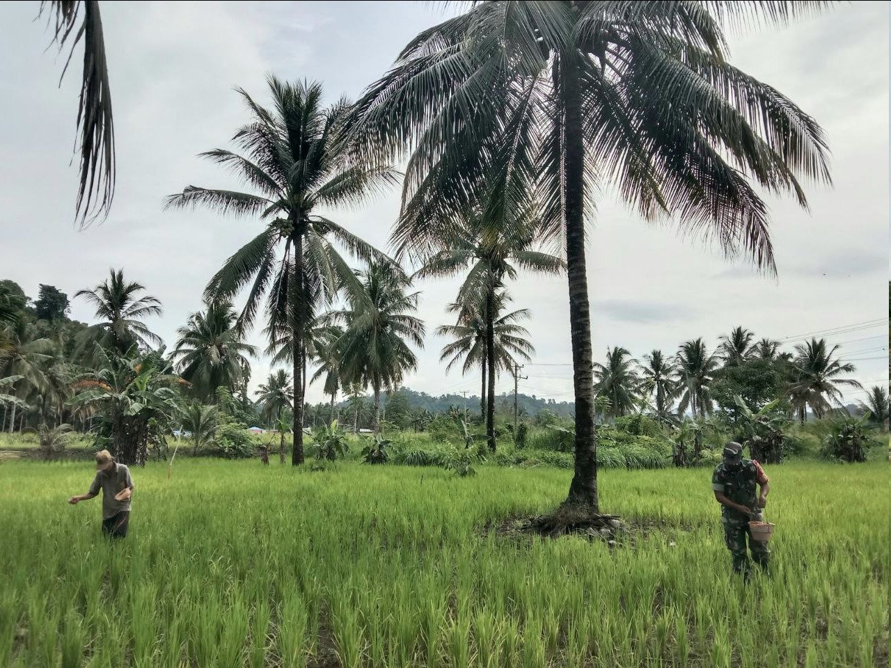 Bintara Pembina Desa atau Babinsa Koramil 1303-11/Lolak Sertu Ronald T. Wuaten, melaksanakan kegiatan Pembinaan Ketahanan Wilayah (Bintahwil) dengan membantu masyarakat melakukan pemupukan tanaman padi ladang milik Bapak Eri Pontolawokang. Kegiatan tersebut berlangsung di lahan seluas kurang lebih 0,5 hektare, dengan jenis padi Rambo dan menggunakan pupuk Urea sebagai penunjang pertumbuhan tanaman, Minggu (01/02/2026).