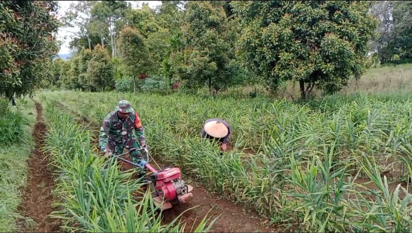 Pada hari Selasa, 06 Januari 2026, pukul 09.30 Wita, Serda Manus D.R melaksanakan kegiatan Pembinaan Ketahanan Wilayah atau Bintahwil dengan mendampingi dan membantu proses pemupukan tanaman dan perawatan tanaman jahe merah milik salah satu warga binaan, Bapak Jonli (57), di Desa Guaan Kecamatan Mooat Kabupaten Bolaang Mongondow Timur.