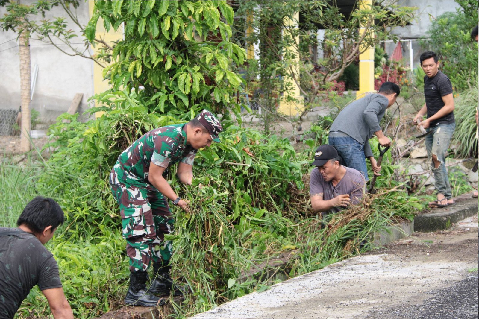 Tak ada jarak antara komandan dan warga. Prajurit memegang cangkul, ibu-ibu Persit mengumpulkan sampah, aparat kepolisian membersihkan saluran air, sementara masyarakat bahu-membahu merapikan akses jalan masuk Desa Ibolian Satu. Saluran air yang sebelumnya tersumbat kini mengalir lancar. Area perbatasan yang sempat dipenuhi sampah berubah menjadi ruang yang bersih dan tertata.