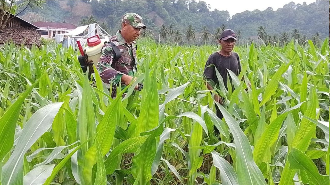B O L M O N G – – Di balik hamparan hijau tanaman jagung yang tumbuh subur di Desa Pindol Kecamatan Lolak Kabupaten Bolaang Mongondow, tersimpan kisah kebersamaan dan kepedulian yang terjalin erat antara TNI dan masyarakat. Kehadiran Babinsa di tengah-tengah petani bukan sekadar menjalankan tugas teritorial, melainkan menjadi bagian dari denyut kehidupan warga desa yang setiap hari berjuang menjaga harapan dari lahan pertanian mereka.