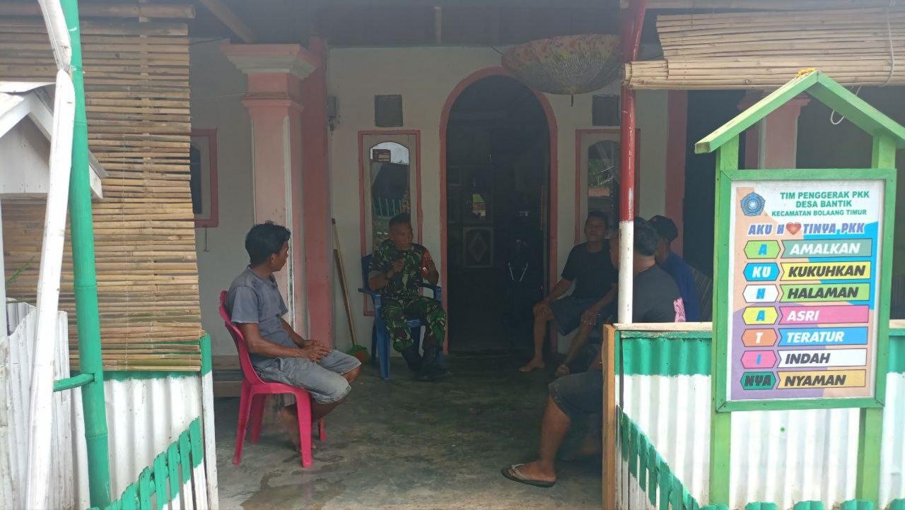 Kegiatan yang berlangsung santai namun sarat makna tersebut menjadi ruang dialog terbuka antara aparat teritorial dengan warga. Duduk bersama di teras rumah warga, Serka Muhadan membangun komunikasi yang hangat, membahas berbagai hal penting demi kemajuan dan ketenteraman desa.