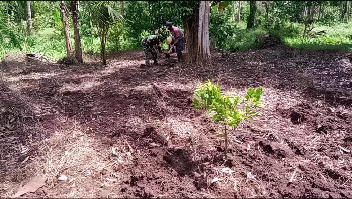 B O L S E L – – Kehadiran Babinsa di tengah masyarakat tidak hanya sebatas menjalankan tugas kewilayahan, tetapi juga menjadi sahabat dan penyemangat bagi warga binaan. Hal inilah yang kembali ditunjukkan Babinsa Koramil 1303-06/Pinolosian Koptu Biran Appandi Taemba, yang dengan penuh kepedulian turun langsung membantu petani menanam jagung sebagai wujud nyata dukungan TNI AD terhadap ketahanan pangan dan kesejahteraan masyarakat.