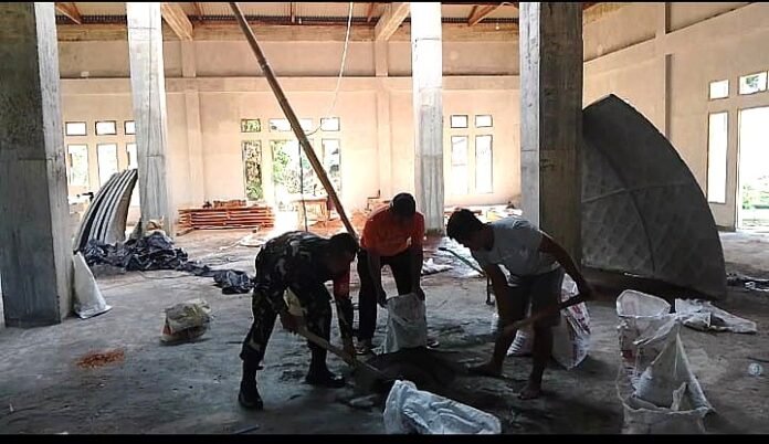 Sebagai wujud nyata kepedulian terhadap lingkungan binaannya, Babinsa Koramil 1303-09/Bolaang Kopda Juanda melaksanakan kegiatan Karya Bakti dengan membantu masyarakat membuat campuran plasteran dinding Masjid Al-Ikhlas Desa Bangomolunow, Selasa (03/02/2026). Kegiatan ini dilakukan bersama warga setempat sebagai bagian dari upaya mendukung percepatan pembangunan sarana ibadah di desa tersebut.