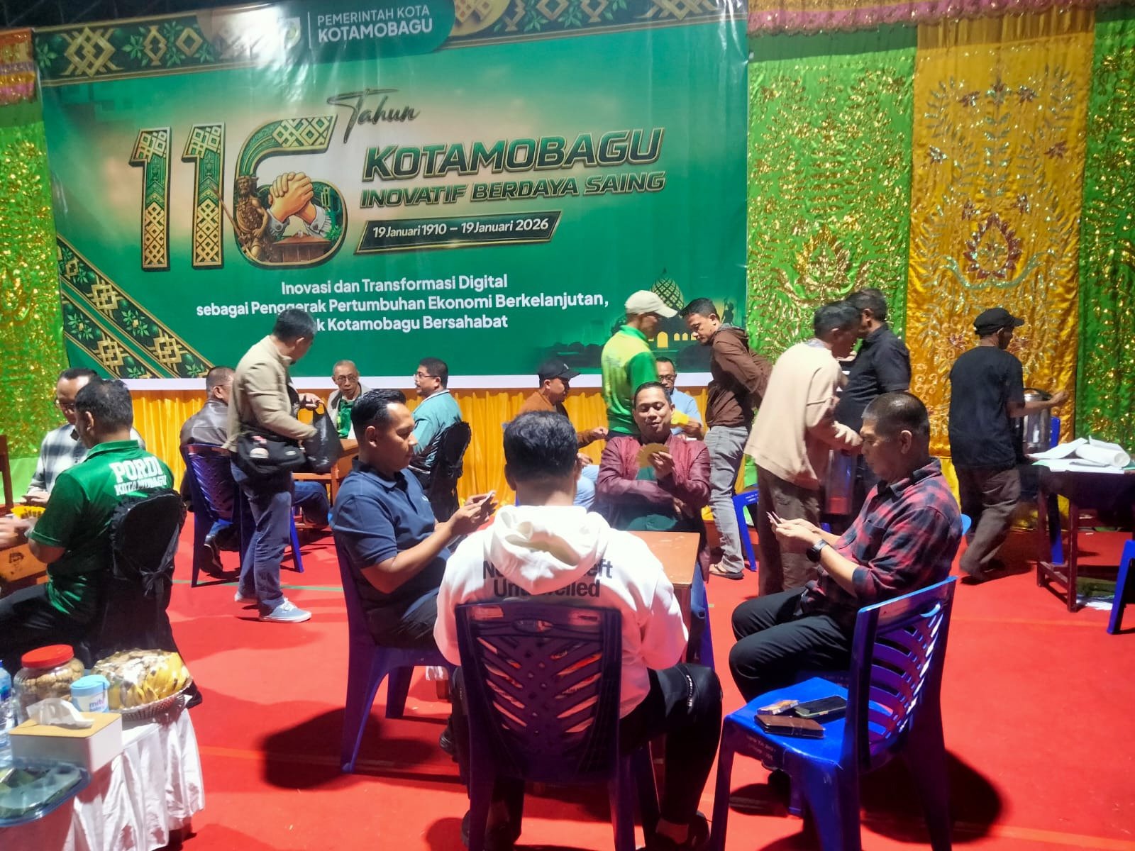 KOTAMOBAGU – – Dalam rangka menyemarakkan Peringatan Hari Ulang Tahun (HUT) ke-116 Kota Kotamobagu, Pemerintah Kota Kotamobagu menggelar Lomba Olahraga Fun Game Domino antar Forum Koordinasi Pimpinan Daerah (Forkopimda), instansi, serta Organisasi Perangkat Daerah (OPD), Senin (12/01/2026) malam.