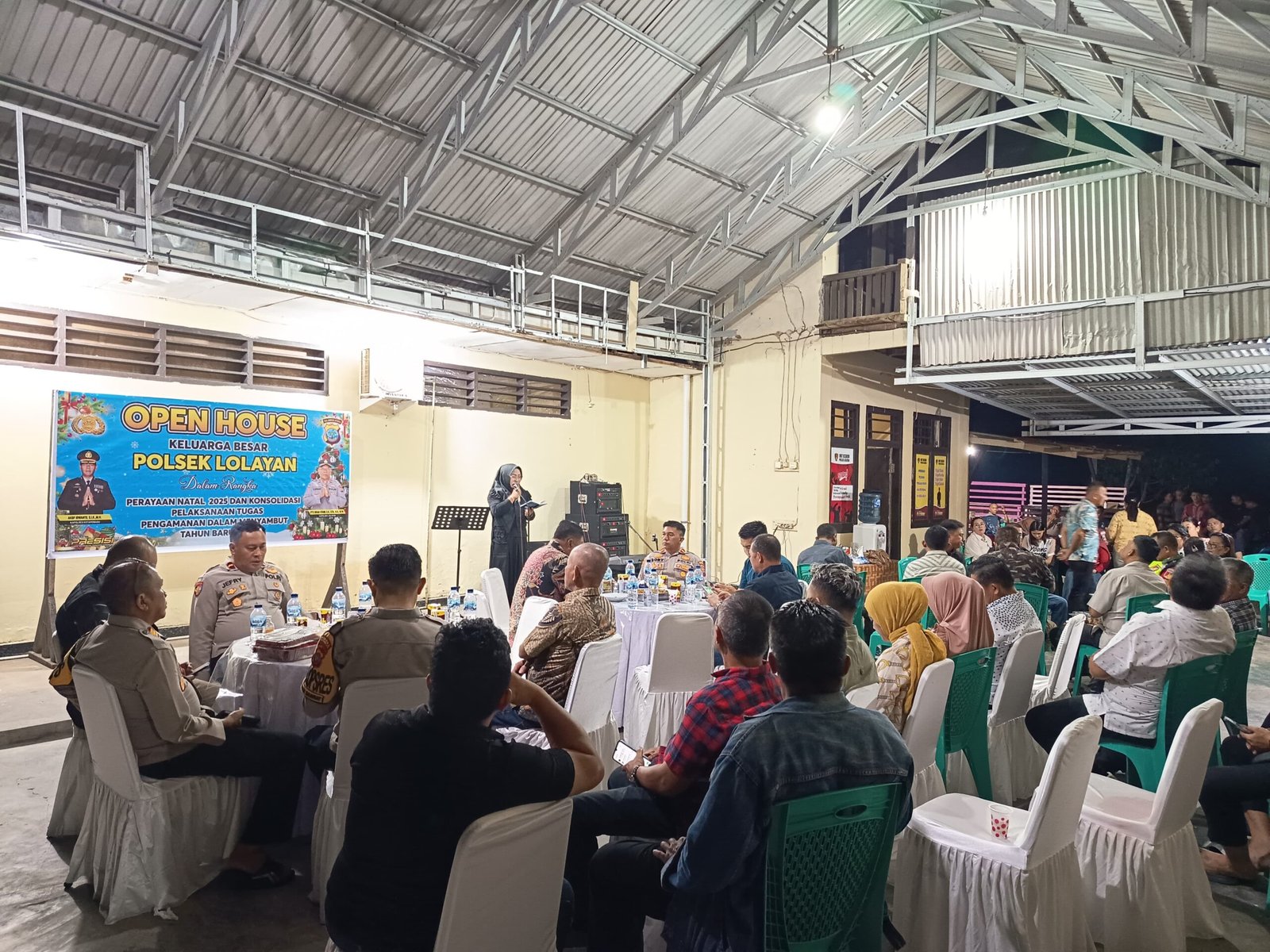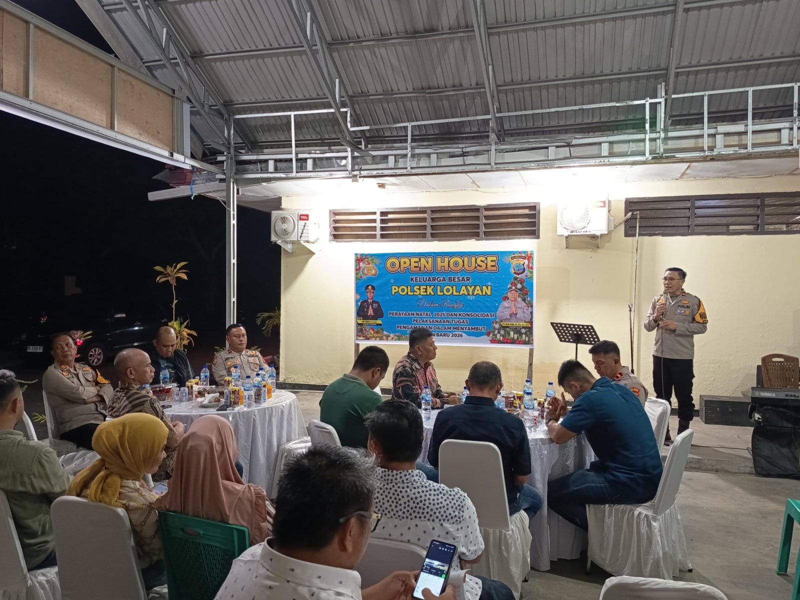 Jajaran Polsek Lolayan menggelar acara Open House perayaan Natal 2025 yang dirangkaikan dengan konsolidasi kesiapan pengamanan malam pergantian tahun 2026.