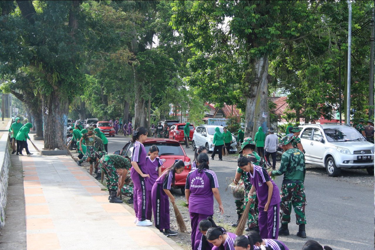 KOTAMOBAGU – – Semangat kebersamaan dan gotong royong kembali terasa hangat di Kota Kotamobagu. Di bawah langit pagi yang cerah, prajurit TNI, Persit, perangkat kelurahan, hingga para pelajar bahu-membahu membersihkan lingkungan dalam kegiatan Karya Bakti Program Indonesia ASRI (Aman, Sehat, Resik, dan Indah). Bukan sekadar membersihkan sampah, kegiatan ini menjadi simbol kuat kepedulian dan cinta terhadap lingkungan.