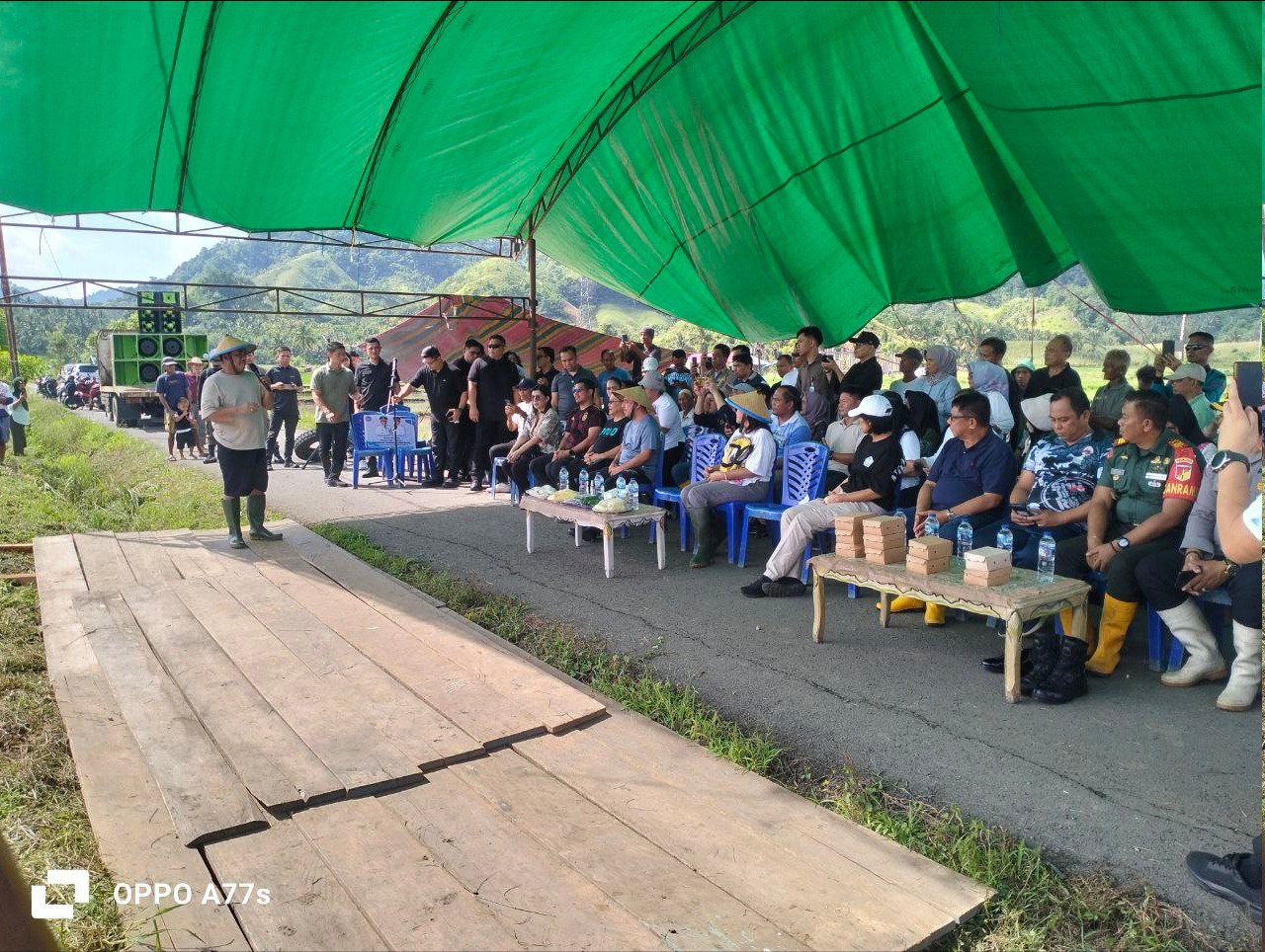 Rangkaian kegiatan dilanjutkan dengan tanam padi perdana di Desa Solog sekaligus penyerahan bantuan traktor roda dua kepada kelompok tani. Dalam kegiatan tersebut, Babinsa bersama aparat kepolisian turut mendampingi masyarakat sebagai bentuk dukungan nyata terhadap program ketahanan pangan dan pemberdayaan petani di wilayah Bolaang Mongondow.